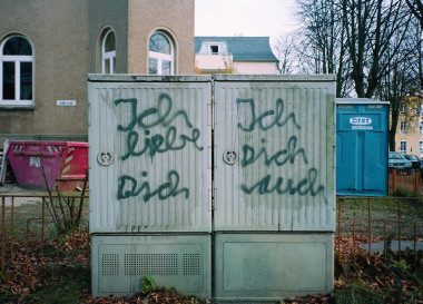 Die Fotografien des Buches »Hi Schatz!« von Martin Eberle sind zwischen 1997 und 2009 entstanden. Sie dokumentieren Berlin genauso wie die Stadt damals – jenseits aller offiziellen Projektionen – tatsächlich war: unfertig, provisorisch, kaputt, übriggeblieben, frei, fantastisch. Vor allem funktioniert der öffentliche und halböffentliche Raum der Stadt in dieser Zeit auch als Träger informeller Kommunikation – Zettel, die irgendjemand irgendwo hinhängt. Ein Liebesbrief, der verloren geht. Flyer, die weitergegeben werden. Jemand sprüht etwas an eine Wand. Die alltägliche und kaum mehr bewusst wahrgenommene Oberfläche der Stadt wird zur Folie privatester Minibotschaften, eigenwilliger Designlösungen oder nackten Irrsinns. Vieles davon ist ohne Insiderwissen, sei es durch Kunstverstand oder Milieukenntnis, nicht zu entschlüsseln. Deutlich wird jedoch immer eine ungezähmte Gestaltungskraft, die sich die Stadtlandschaft nimmt und ihr eine eigene Interpretation verpasst. Nischen und Brachflächen werden besetzt, verändert und für die eigene Nachricht oder einen Witz genutzt.