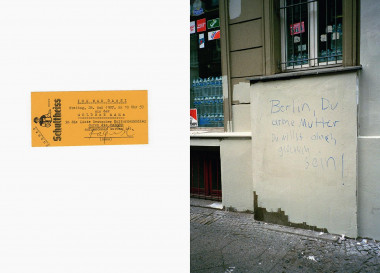 Die Fotografien dieser Aneignungen lassen das Berlin dieser Jahre nochmal auferstehen, sie zeigen die Großstadt persönlich, schmutzig, verletzlich, emotional, die vielen Nischen und verlorenen Ecken, den ganzen Wahnsinn. Martin Eberle hat sich zu einer ähnlichen Thematik auch bereits mit seinem Band »Temporary Spaces« (Gestalten Verlag) profiliert.