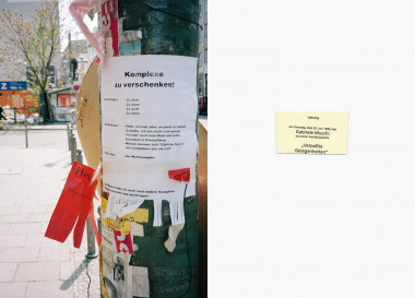 Die Fotografien des Buches »Hi Schatz!« von Martin Eberle sind zwischen 1997 und 2009 entstanden. Sie dokumentieren Berlin genauso wie die Stadt damals – jenseits aller offiziellen Projektionen – tatsächlich war: unfertig, provisorisch, kaputt, übriggeblieben, frei, fantastisch. Vor allem funktioniert der öffentliche und halböffentliche Raum der Stadt in dieser Zeit auch als Träger informeller Kommunikation – Zettel, die irgendjemand irgendwo hinhängt. Ein Liebesbrief, der verloren geht. Flyer, die weitergegeben werden. Jemand sprüht etwas an eine Wand. Die alltägliche und kaum mehr bewusst wahrgenommene Oberfläche der Stadt wird zur Folie privatester Minibotschaften, eigenwilliger Designlösungen oder nackten Irrsinns. Vieles davon ist ohne Insiderwissen, sei es durch Kunstverstand oder Milieukenntnis, nicht zu entschlüsseln. Deutlich wird jedoch immer eine ungezähmte Gestaltungskraft, die sich die Stadtlandschaft nimmt und ihr eine eigene Interpretation verpasst. Nischen und Brachflächen werden besetzt, verändert und für die eigene Nachricht oder einen Witz genutzt.